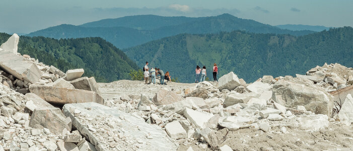 - Мраморное месторождение. Смотровая точка на высоте для обзора на Западный Саян, Борус, Енисей.