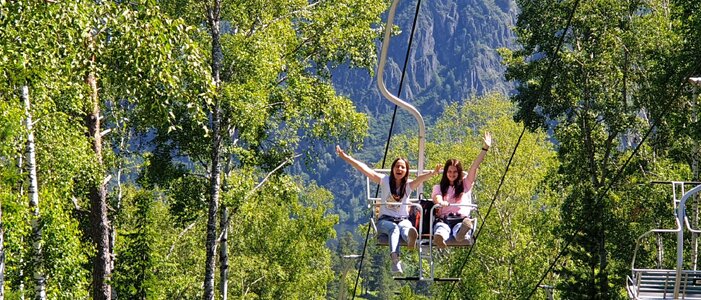Открытый кресельный подъемник, длиной 600 метров на вершину горы. Время подъема 6 минут. Перепад высот 160м. На вершине есть: чайная юрта (можно купить чай/кофе/сладости к чаю), организованные места для чаепития, смотровые на поселок Черемушки и окрестности гор, домик бабы Яги, качеля — доп плата, маленький каркасный бассейн — доп плата, туалеты.